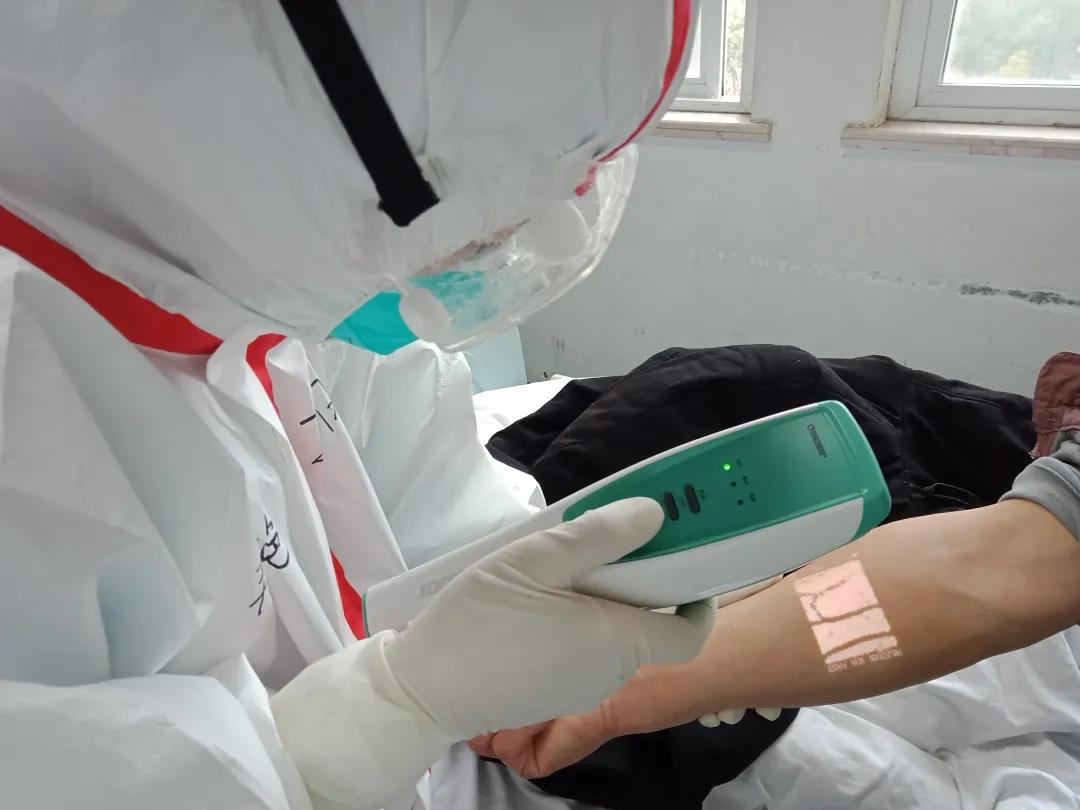 為了解決一線醫護人員在層層防護下“扎針難”的問題, 國科控股及中科院母基金所投子基金「中科創星」第一時間組織捐贈了共96臺(價值1152萬)、由被投企業「中科微影」研發的投影式紅外血管成像儀,定向支援武漢市漢口醫院、武漢市第四醫院、武漢市第七醫院等多家湖北省相關疫情防控定點醫院以及陜西省援助湖北醫療隊、河北省援助湖北醫療隊。